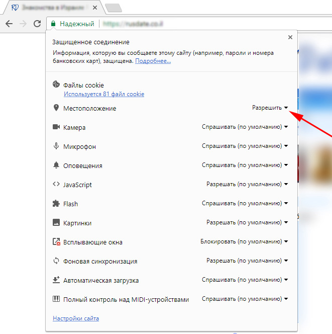 Зачем нужен доступ к моим координатам и как его включить? Если вы хотите видеть расстояние до других пользователей на сайте и искать тех, кто рядом, вам нужно дать нашему сайту доступ к вашим координатам. Ниже инструкции, как можно это сделать для разных браузеров: